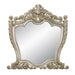 Feast your eyes upon the decadence and true luxury of the Danae collection of furniture! This striking bed defines opulence! Created to make a statement, this regal bed invites you to hold court in its divine carved curves and details. The Champagne finish and gold accents help enhance the sculpted features. Upholstered in luxurious PU, this bed is a stylish statement piece for any bedroom.