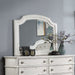 Perfect for getting ready for the day, this Jaqueline dresser mirror is the ideal companion to any bedroom. It features a beautiful regal shape and wooden trim. The mirror features a beveled edge that gives this piece some visual depth. The antique white finish can be easily blended into various color schemes and decor styles.