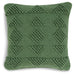 | Details | Polyethylene terephthalate cover, Handwoven geometric design in green, Solid green reverse, Fiber filled, Zipper closure, Made for indoor/outdoor use, Imported, Spot clean only | |