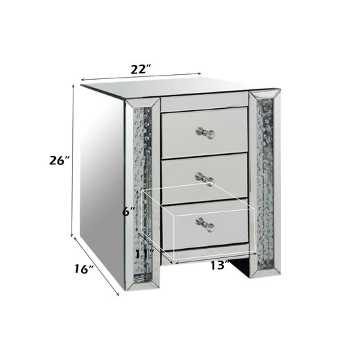 ACMENysa - Accent Table With LED - Mirrored & Faux CrystalsProduct Features Assembled, Rectangular Night Table w/LED Storage: 3 Drawer Features: Mi...