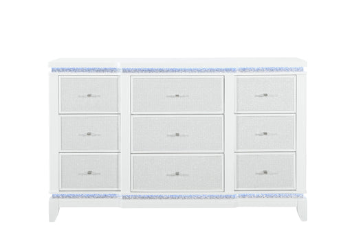 Global Furniture USAThe Alina Dresser is an exquisite fusion of functionality and style. Its white finish harmonizes with LED-lit crushed glitter, while the perforated...