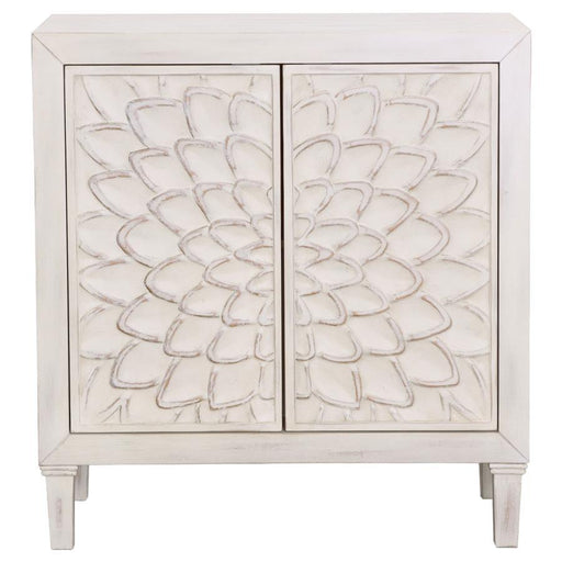 CoasterElevationsBring charm and character to your space with this beautifully crafted accent cabinet. Featuring intricately carved floral doors and a distressed wh...