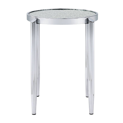 Enjoy a contemporary look in your living room or den with this stylishly elegant Alexis chrome table. This Meridian Furniture table is made from gl...