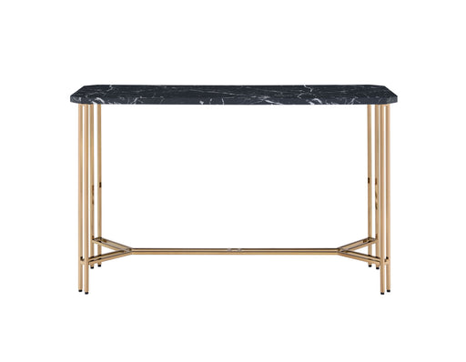 Steve Silver FurnitureAn elegant Sofa Table with a glamorous profile to dress up any room. A lustrous black faux-marble top complements the golden champagne iron legs in...