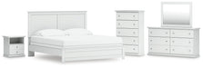 Bostwick Shoals King Panel Bed with Mirrored Dresser, Chest and Nightstand Skip to content