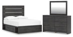 Hollivern Full Panel Bed with Storage with Mirrored Dresser Skip to content