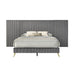 This Muilee bed is anything but subtle. It produces a bold statement in any bedroom. The bed is fully padded in a luxurious silver fabric. Its oversized channel-tufted headboard is an eye-catching focal point. This feature adds depth and visual contrast to any room. Sitting on stylish gold metal legs for stability. The matching nightstands offer the same beautiful gold legs in a neutral finish to compliment the bed and any decor.