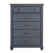 The Americana Chest boasts a refreshing coastal twist on traditional style. Skillfully crafted from Rubberwood Solids and Birch Veneers, the subtle distressing Corduroy Blue finish and Antique Pewter hardware give this Chest an updated look with a timeless heirloom feel. Featuring five drawers with felt lined top drawer, this Chest will provide ample storage space for clothing and accessories. Just like Baseball, Apple Pie and Rock & Roll, the Americana Chest of Drawers will become a beloved favorite in your home. Fully assembled upon arrival, this piece from Bridgevine Home is ready to unbox and enjoy