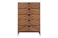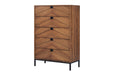 - Bring home the Astoria Chest to furnish your main or spare bedroom in modern, contemporary style. Five drawers with a felt lined top drawer will provide ample storage for apparel and linens. Crafted from Acacia Solids and Veneers, this showstopping chest features a crisp chevron pattern in a Natural finish that beautifully showcases the unique characteristics of the wood grain. A Black Metal Base and Hardware complete this upscale look.