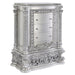 Characterized with button-tufted upholstery, intricate scrollwork, and lustrous finish, the Valkyrie Bedroom Collection provides the feeling of luxury and sophistication. Ornate carvings with floral scroll design on each piece boast extravagant silhouettes and dramatic style. Antique Platinum Finish paired with muted gray tone fills the collection with a noble and elegant flair. Felt-lined drawers feature a self-closing mechanism with built-in safety stops and keep items in place as you open and close the drawer. Give your interior a royal touch and classic look with the Valkyrie Bedroom Collection.
