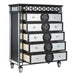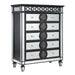 - Drawer: Glide Side Metal (3/4 Ext.), Dovetail English Front & Back, Felt Lined Top Drawer (unfinished), Safety Stop, Hardware: Crystal like Knobs