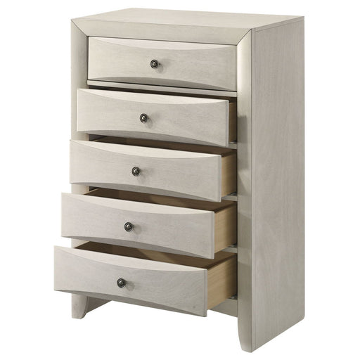 ACMEChantelle - Chest - Pearl White FinishProduct Features 5 Drawer Wooden Top Casegood Drawer: Side Metal Glide Drawer (Full Ext.), Dovetail French Fr...