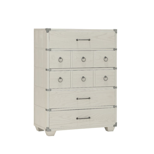ACMEAntares - Chest - Light Gray OakProduct Features 5 Drawer Case-Leg Wooden Frame with Mirrored Front Trim Wooden Block Leg Shape: Rectangular Case: ...