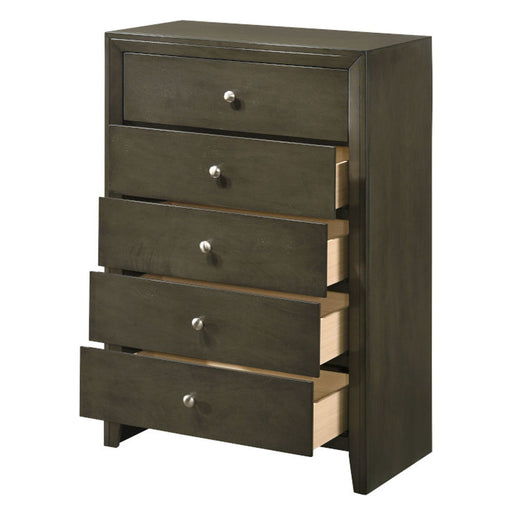 ACMEOrchest - Chest - GrayProduct Features 5 Drawer Drawer: GLIDE) Side Metal, (Ball Bearing), DOVETAIL) English, Manual-Close, Hardware: Double Pull-K...