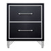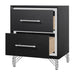 The Ava 2 Drawer Nightstand in Ebony blends modern glamour with everyday functionality. Crafted from engineered wood with eco-friendly black laminate, it features silver mylar accents and sculpted legs for a chic finish. Two spacious drawers offer smooth operation with English dovetail joinery and Kenlin ball-bearing glides. A stylish and practical piece that adds a touch of sophistication to any bedroom.