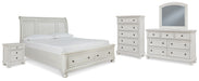 Robbinsdale California King Sleigh Bed with Storage with Mirrored Dresser, Chest and Nightstand Skip to content