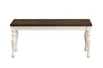 Add a touch of rustic charm to your space with the Joanna Bench. With its ivory and mocha wire-brushed finish, turned legs, and farmhouse styling, this bench is both functional and stylish. Crafted with high-quality materials and expert craftsmanship, the Joanna Bench is built to last. Its solid construction ensures that it can withstand frequent use, while its farmhouse design adds character and warmth to any room. Measuring 44 inches in length, the Joanna Bench is versatile enough to be used as a seating option in the dining room, living area, or even in the entryway. Its unique two-tone finish and turned legs add a touch of sophistication to any setting, making it a perfect addition to any farmhouse-influenced home..