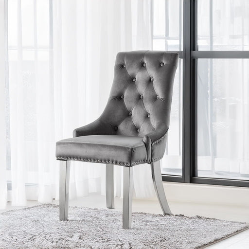 ACMESatinka - Side Chair (Set of 2) - Dark Gray Satinka - Side Chair Set of 2) - Gray Fabric & Mirrored Silver24.0"W x 20.0"D x 40.0"H - 55.0 lb