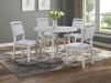 Create a warm and inviting dining space with this stylish and timeless set. Featuring a beautifully crafted round tabletop with a light, weathered finish, it brings a touch of rustic charm while maintaining a modern aesthetic. The sturdy legs provide lasting durability, making it perfect for everyday meals or special gatherings. Softly upholstered chairs offer both comfort and elegance, with a chic neutral fabric that complements any décor. Whether you're enjoying a casual breakfast or hosting family and friends, this set delivers the perfect blend of charm, comfort, and functionality for any home.