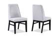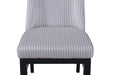 This dining set is a sophisticated blend of contemporary design and artistic flair, ideal for modern homes seeking a touch of elegance. The set features a sleek, round table with a faux marble top that is both beautiful and easy to care for. The table's base is a sculptural marvel, with a dynamic, cage-like structure that is as sturdy as it is stylish. Accompanying the table are plush chairs upholstered in a high-quality, textured fabric, their high backs and cushioned seats offering utmost comfort. The chairs' bold, black frames contrast with the light upholstery, adding a striking visual interest to the set.