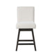 The High Line Counter Height Swivel Chairs offer a blend of durability, comfort, and functionality. Each set includes two counter swivel stools, expertly crafted from solid Acacia and Rubberwood, complemented by high-quality manufactured woods and Birch veneers to ensure long-lasting durability and stability. These chairs are upholstered in luxurious bouclé fabric, known for its exceptional durability, making them ideal for frequent use. The unique looped texture provides a plush, comfortable seating experience, adding both elegance and longevity to your dining area. The side-to-side 180° swivel feature allows for easy conversation, making these chairs perfect for dining rooms, kitchen islands, bars, or as accent chairs. They add both functionality and aesthetic appeal to any space. The High Line Counter Height Swivel Chairs are a versatile and stylish addition to any home, combining practical features with a touch of sophistication.