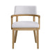 - Light Color Scheme: The light-colored wood and white upholstery create a neutral color scheme, making the chair versatile for various room styles.
