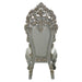 Indulge in the allure of these exquisite Sandoval side chairs and experience the comfort and elegance it brings to your living space. The chair's carved legs showcase intricate detailing, adding a touch of refinement and artistry. The craftsmanship of the carved legs creates a sense of timeless beauty and enhances the chair's overall aesthetic. The button-tufted backrest is a standout feature of this side chair. Each tuft is adorned with sparkling crystal-like buttons, creating a stunning visual effect that adds a touch of glamour and luxury. The button tufting not only enhances the chair's elegance but also provides plushness and support for your back. Upholstered in synthetic leather, the chair exudes sophistication and offers a smooth and luxurious feel. The synthetic leather provides a durable and easy-to-clean surface, making it practical for everyday use while maintaining its refined appearance. Adding a regal touch, the chair boasts an elaborately carved crown on the backrest. This ornate crown showcases intricate patterns and adds a touch of grandeur and sophistication.