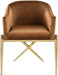 Spread elegance and modernity to your dining room with this Xavier velvet dining chair from Meridian Furniture. This beautiful chair features a simple barrel seat with a plush cushion and back, ensuring that every meal is a comfortable one. The steel legs provide durable support while you sit, and an "X" leg in the back lends the chair an uber-modern vibe. finishing on the base is sleek and chic, giving this chair a contemporary edge that's well at home in any modern dining room. Sleek velvet upholstery is durable and tough yet soft against your body, elevating meal times to a luxurious experience.
