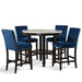 The Celeste Counter Dining Set is an exquisite combination of modern sophistication and enduring craftsmanship. This set includes a chic 42-inch counter table with a base and a faux marble top, accompanied by stunning velvet chairs. Crafted from solid Rubberwood and high-quality manufactured wood components, the dining set is designed for longevity, ensuring a lasting addition to your dining space. The glossy finish on the tabletop provides both heat and water resistance, ensuring easy cleaning and protection from wear. The white and gray veined faux marble top, complemented by deep espresso legs, creates a contemporary and glamorous ambiance. Luxurious seating awaits with the soft and durable 100% polyester velvet fabric covering sumptuous memory foam cushions, offering both comfort and easy maintenance. The stability of the counter chairs is enhanced by four base stretchers, which double as convenient footrests. Tailored for elegance, the rich and luxurious colors of the velvet chairs are enhanced by silver nailhead trim, providing a sparkling final touch to this impeccable dining set. Elevate your dining experience with the Celeste counter dining set—a fusion of contemporary glamour and enduring quality.