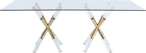 Meridian FurnitureBring modern pizzazz to your living room with this Mercury Acrylic Gold Dining Table by Meridian Furniture. The base features a pedestal design wit...