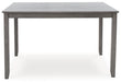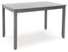 | Details | Includes counter height dining table and 6 counter height bar stools, Table made with hardwood solids, acacia veneer and MDF substrate, Stools made with solid hardwood frames, Antiqued gray wash finish, Polyester upholstery, Foam cushioned seats, Nailhead accents, Assembly required | |