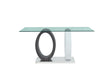 Striking ultra modern design and bold styling this dining table by Global Furniture USA is in a class all by itself. This table boasts a rectangular clear glass top, contrasting oval design supports and stainless steel base with a polished chrome finish. Add this to your dining area and it will be the topic of conversation with all your guests.