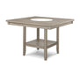 Elevate your dining experience with this elegant counter height dining set, designed to blend seamlessly with any modern or rustic décor. The set features a spacious, finely crafted table with a built-in faux marble turntable and open lower shelf in a weathered white oak finish, exuding a timeless charm that enhances the warmth and appeal of your dining area. Complementing the table are four ergonomically designed chairs and a versatile bench, all upholstered in a soft, neutral fabric that promises comfort and durability. The sturdy wooden frames ensure lasting stability, while the bench adds a unique touch, perfect for family gatherings or casual dinners.
