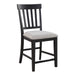 Modern farmhouse design in a counter dining set that seats six comfortably, the Halle Counter Dining Set features timber-beam legs with clean lines that will complement cottage or contemporary settings. The 60-inch table expands easily to 78 inches with the 18-inch leaf to accommodate extra guests or family. The neutral ebony and finish adds a refined look to this instant farmhouse classic and the Counter Chair and Bench offer crisp clean styling in an upholstered seat for comfortable dining.