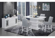 This bar table is a showcase example of how charm and a touch of elegance can dramatically change the look of your eating area. This table includes glitter detailing style elements with a sturdy construction and a high gloss finish with a clear glass inlay to round off the look. Constructed of MDF, Glass and Acrylic this dining table makes a bold statement. Finished in a White and Silver with a center glass, square shape and pedestal base you will have more than enough room to entertain and enjoy your dining experience.