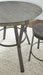 Mixed media counter set with compact design and stylish gray finish. Portland features swivel counter stools with stretchers for added strength and comfort and the round dining table fits well in any dining setting.