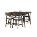 The Rex Mid-Century Modern Wood Counter Dining Set combines sleek design with everyday practicality, making it a great choice for both casual meals and gatherings. This set includes a spacious counter-height table and matching counter stools, all crafted from solid rubberwood, manufactured woods, and oak veneers for durability and long-lasting use. The minimalist design, with clean lines, rounded edges, and angled, tapered legs, captures the essence of classic Mid-Century Modern style. Finished in a rich, hand-rubbed walnut brown with a clear topcoat, the set highlights the natural beauty of the wood grain. Each stool offers comfortable seating with softly curved backrests and resilient foam cushions wrapped in easy-care 100% polyester fabric. Perfect for larger dining spaces, this table comfortably seats up to six, providing the ideal spot for dining and conversation.