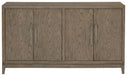 You want your dining room to reflect your refined sensibilities while remaining forward-thinking in design. The simple silhouette of this dining server opens the door to a dining room with the curated look and subtle flair you desire. The piece's elegant waxy gray finish gets an added touch of luxury with striking metal bar pulls in a light pewter tone. Two double door cabinets, each with an adjustable shelf, allow you to store in streamlined style.