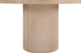 Give your dining room or eat-in kitchen a casual vibe with this Belinda dining table. A solid wood base and resilient construction offers impeccable durability and remarkable beauty. The round top rests on the fluted base, providing oodles of elbow room for family and friends to get comfortable while they nosh on their meal. The chair's made from wood and wood products for resilience, and its neutral finish lets it mesh well with the dining chairs or stools of your choice.