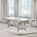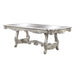 An ode to traditional glamour, the Devayne double pedestal dining table brings in all the allure and charm that you are seeking for a dining table. The table features an extension leaf that allows for additional dinner guests. The champagne finish enhances the beautiful floral moldings on the pedestals and apron. The tabletop features mirrored panels that highlight your dinnerware.