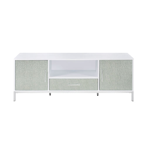 Aveena - 76" Entertainment Unit With TV, LED, Speakers, Crystal Inserts And Pop Up Center Doors - White