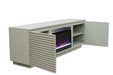 The Stardust Fireplace TV Stand features clean lines and understated design that will transform any room into a modern, sophisticated sanctuary. This unique piece will accommodate TVs and includes cable management openings and ample storage space for media and gaming consoles. The fireplace insert with clear crystals will keep you cozy while binge watching your favorite movie or TV series.