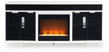 Combining a white high-gloss finish with black glass doors, this TV stand proves opposites really do attract. It's the perfect blend of modern style and functionality, with ample space for your media devices, flat-screen TV and soundbar. Adding that much more show-stopping style, the electric fireplace insert operates with or without heat and includes a six-level temperature setting, a remote control and an overheating control for added safety. It comes with faux glass crystals and natural stones, so you can customize the look of the flame bed.