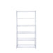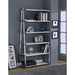 Coleen 6-Tier leaning bookcase is attractive and free standing and can be used as a bookshelf or display shelf. There are 6 total wooden shelves of differing sizes with an open back panel and a metal frame with a chrome finish. This bookshelf is the perfect addition to any room. Some Assembly Required.