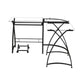 Corner Computer Desk Orientation: "L" ShapeX-Shape Metal Frame BaseRectangular Table Top w/Tempered GlassKey Board Tray IncludedComputer Holder Included