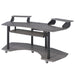 With no detail left unnoticed, this Eleazar Music Recording Studio Desk provides excellent functionality and versatile organizing options. With an extensive desk top design, plenty of workable surface area is left. The multi-funtion hutch is perfect for displaying monitors, speakers, documents, and books. While the lower shelf can be used to place larger items. Available in two sizes and two different finishes, this contemporary piece will sure to be the perfect addition to your home office.