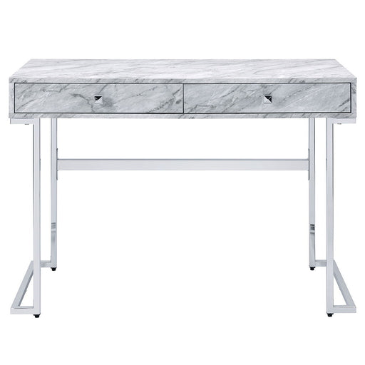 ACMEBring sleek, minimalist style to your workplace where you stay for eight hours a day. The desk features a modern glamour design with white faux mar...