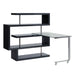 Designed for space-conscious, the Raceloma writing desk with shelves is excellent for those with smaller spaces. The winding S-shaped shelf bookcase instantly transforms any room giving your books and decor a vibrant stage for display. Adding function to the design with a convenient roll-out desk with a sleek glass top, use it as an extra shelf on the bookcase when not in use. This desk makes for a contemporary multi-purpose piece in smaller spaces.