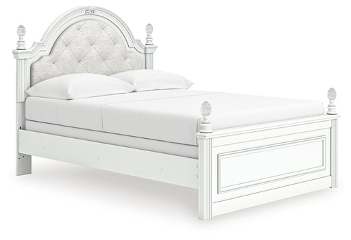 Signature Design by Ashley®Fit for a princess. This full upholstered panel bed’s crisp matte white finish pairs with charming ornate beading and sumptuous button-tufted uphol...