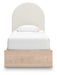 Looking for a twin storage bed that's both playful and practical for your little one? This piece is just the ticket. Its charming organic shaping and light upholstery create a whimsical and inviting look that whispers “sweet dreams.” Spacious drawers underneath provide plenty of storage, so there’s no need for a messy room.